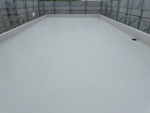 小学校体育館倉庫新築屋上防水工事 塩ビシ-ト接着工法
